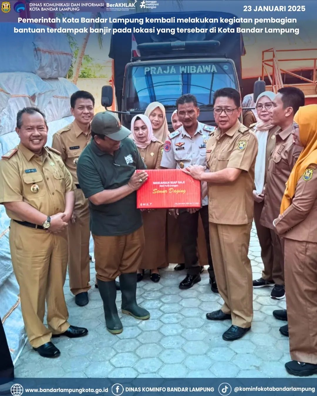 Pemerintah Kota Bandar Lampung kembali melakukan kegiatan pembagian bantuan terdampak banjir pada lokasi yang tersebar di Kota Bandar Lampung (Kamis, 23 Jan 2025).